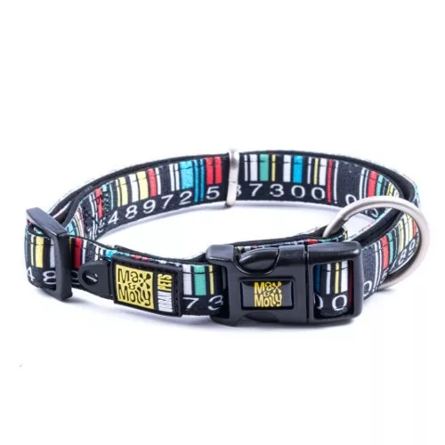 El collar de diseño Max & Molly Barcode es un accesorio de primera calidad que destaca por tener un estampado moderno y exclusivo. Se trata de un collar con 3 capas, tipo sandwich: poliéster extra fuerte y suave en el exterior, nylon reforzado en el centro y neopreno blando y cómodo en el interior. El neopreno es hipoalergénico, seca muy rápido y alivia el cuello de los perros.