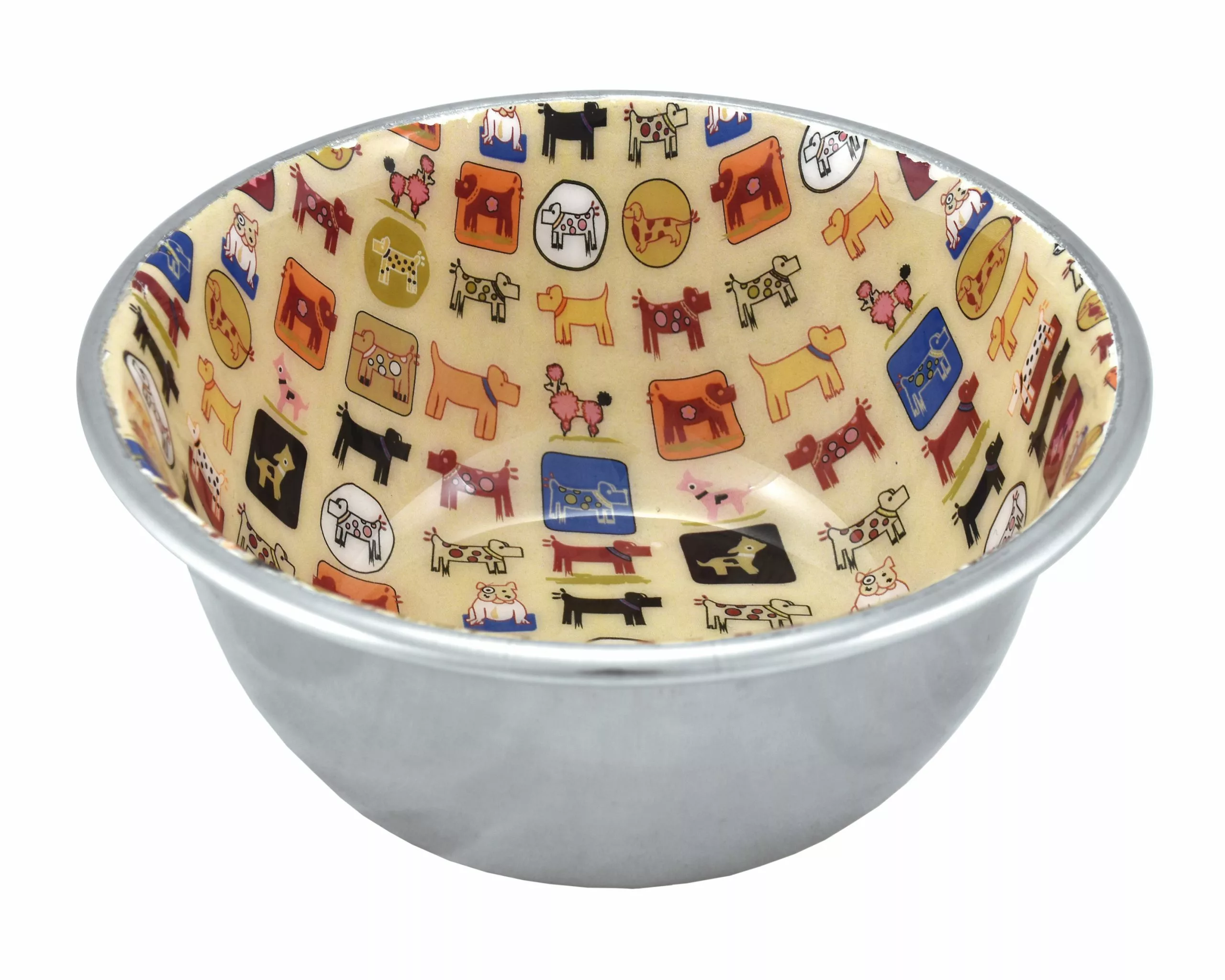 Este comedero/bebedero con estampado tan bonito de perros es de acero inoxidable y antideslizante. Disponible en dos tamaños.