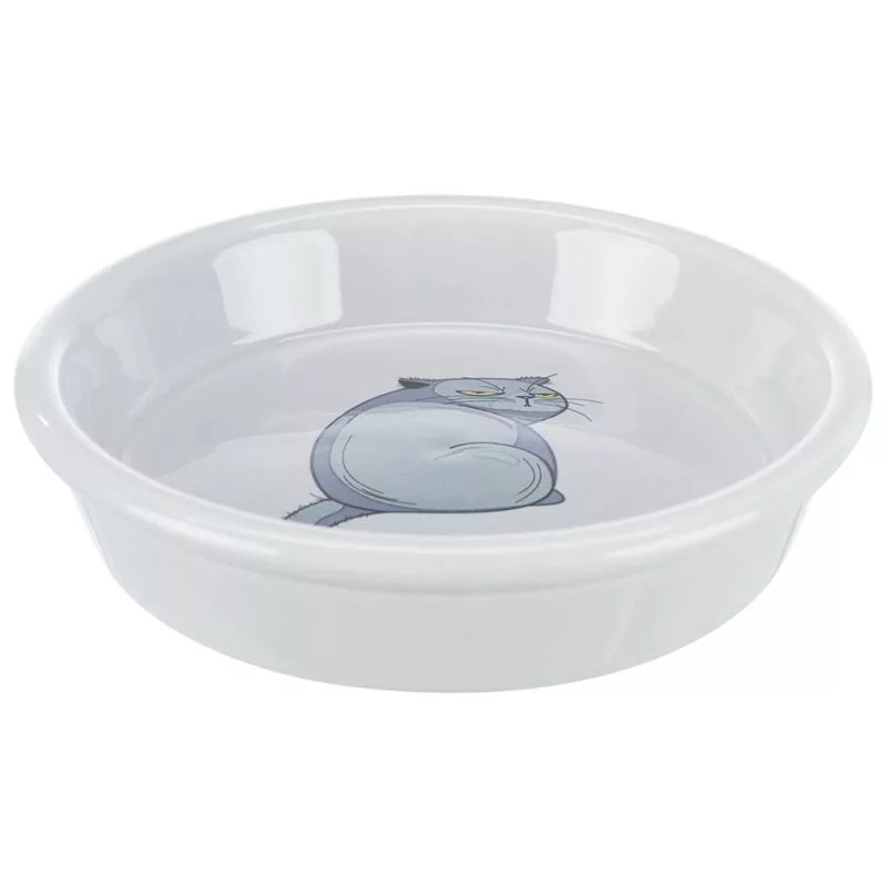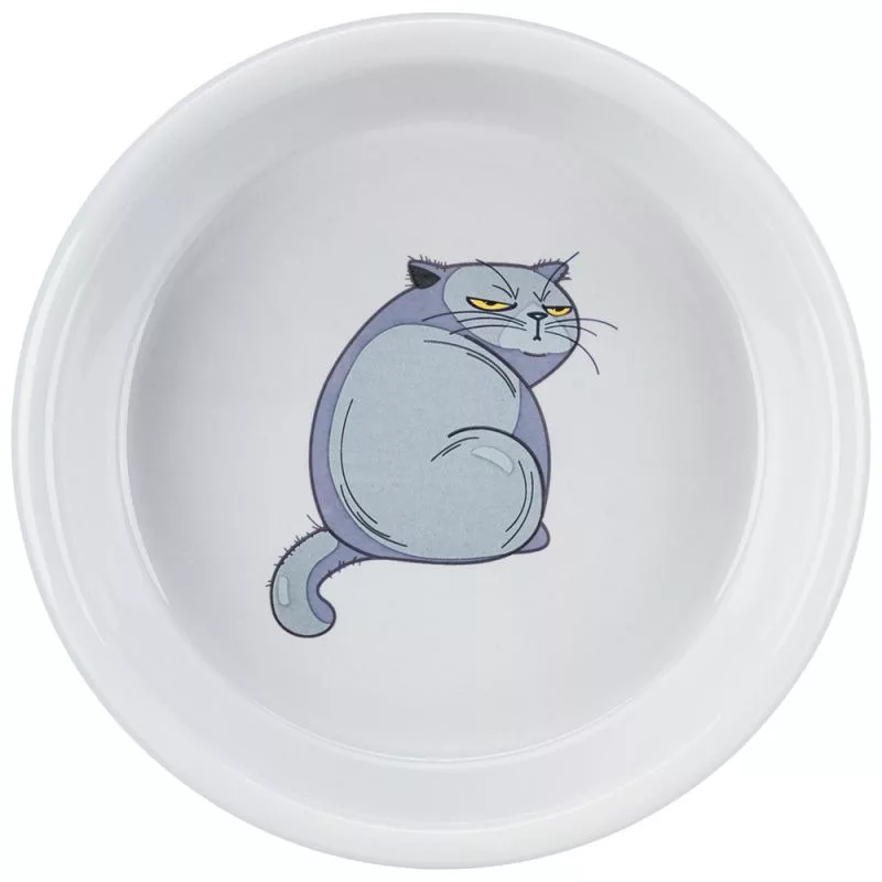 Divertido Comedero de cerámica con dibujo de cómic de gato enfadado.