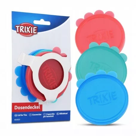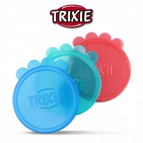 Pack de 3 tapas para los botes de comida húmeda de nuestros compañeros.De plástico resistente y adaptables.
