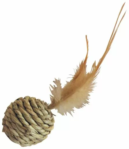 Juguete para gatos, bola de seagrass con plumas, de un tamaño de 15 cm