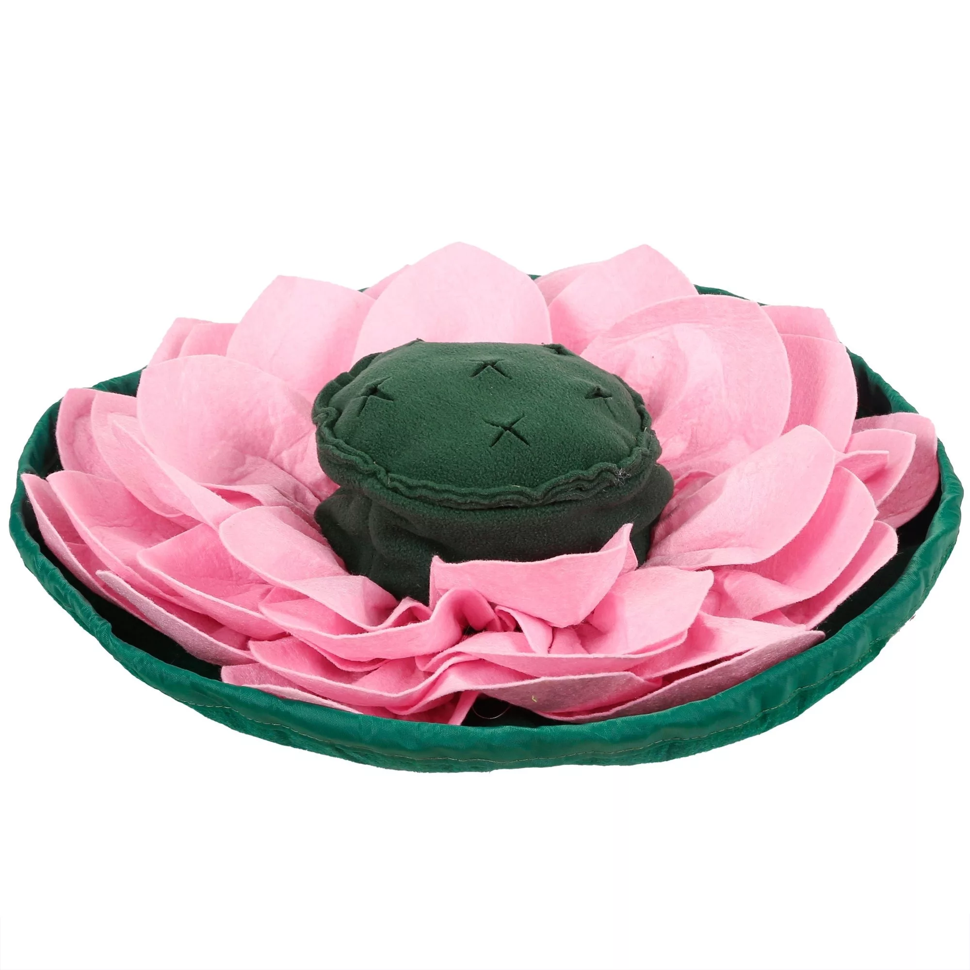 La flor de loto es un juguete para olfatear con forma de flor que en cada pétalo tiene huequitos para poder esconder diferentes chuches y que nuestro perro o gato las busque. En la parte central tiene también diferentes orificios para poder esconder más chuches y además este modelo se puede cerrar haciendo forma de bolsita para llevárnoslo de viaje.