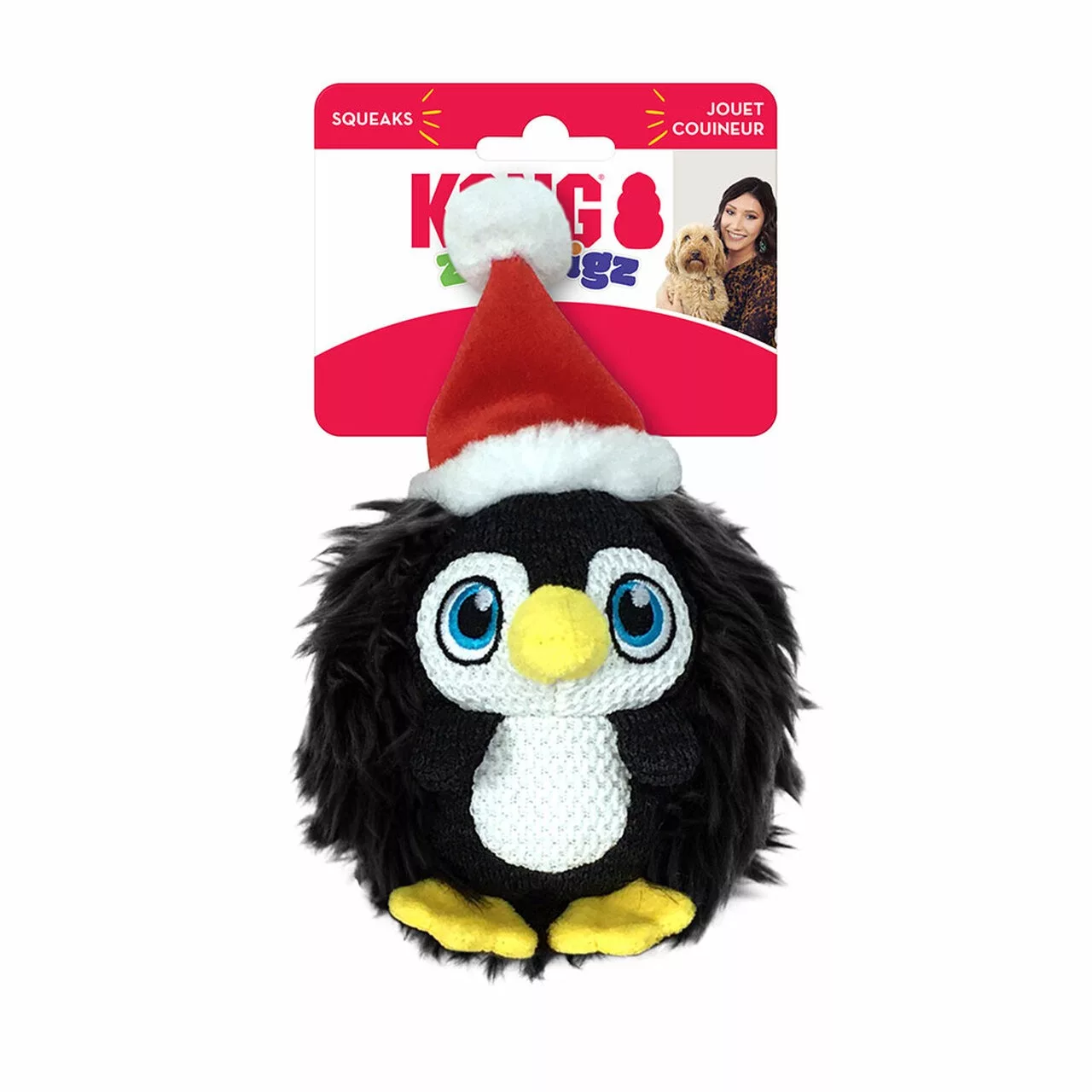 Peluche pingüino con gorrito de navidad.Tiene sonido y forma redondita para jugar tipo pelota.