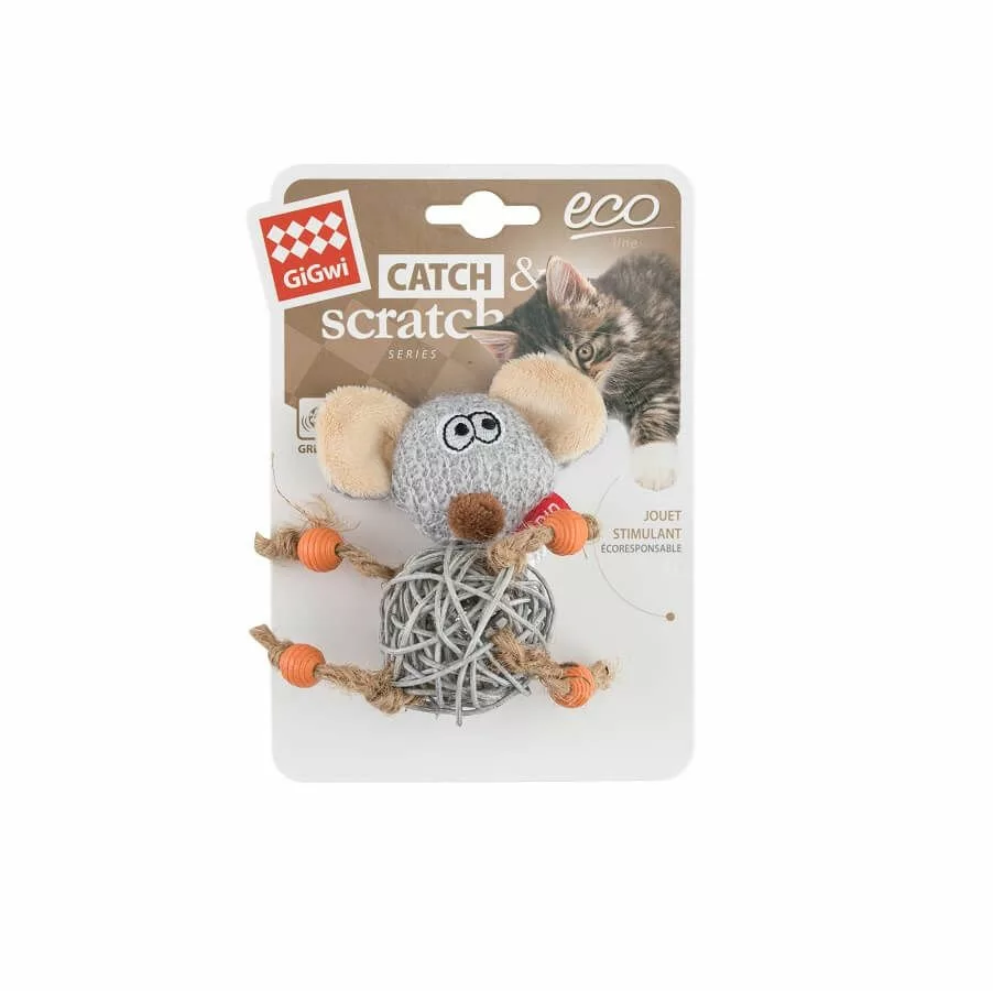 Relleno con hierba gatera,de efecto estimulante y un cascabel en la bolita que hará que tu gato lo persiga por todos los lados