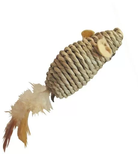 Juguete para gatos, ratón de seagrass con plumas, de un tamaño de 13 cm