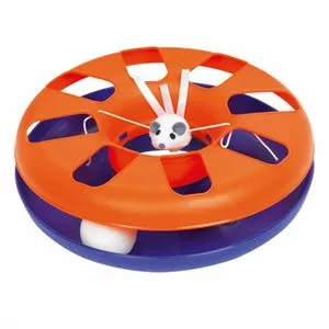 Entretenida rueda de ejercicio que estimulará el instinto de caza de nuestro felino,lleva un ratón en la mitad de la rueda para jugar con él.