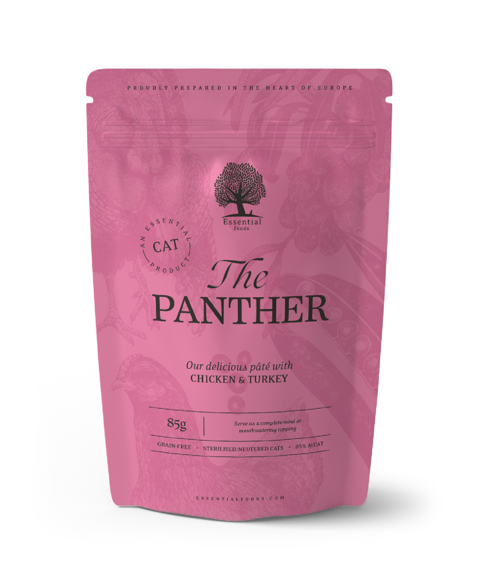 Filetes de pollo (66%), hígado (15%), pavo (4%), harina de guisantes (3%),