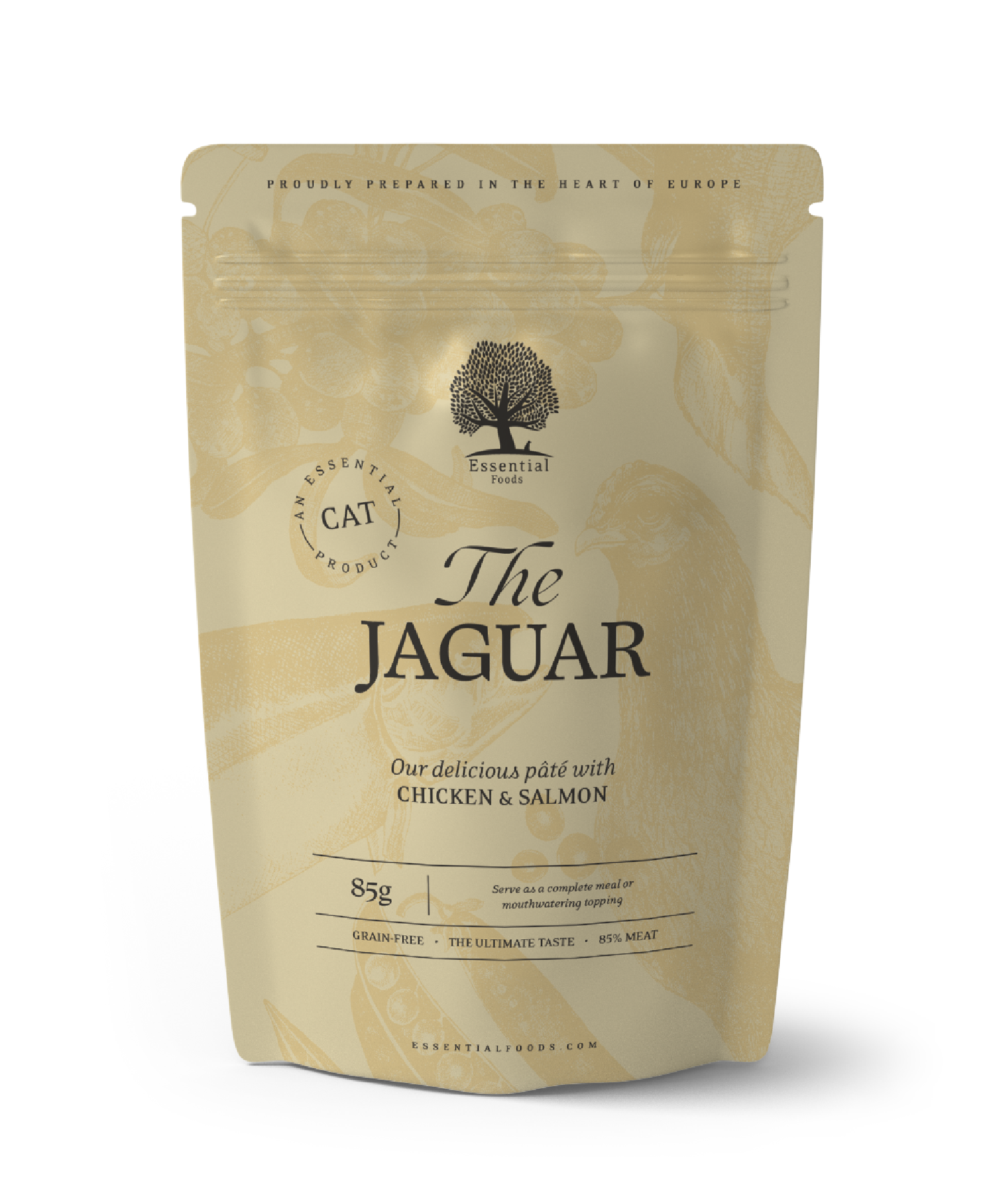 Filetes de pollo (66%), hígado (15%), salmón (4%), harina de guisantes (3%), fibras