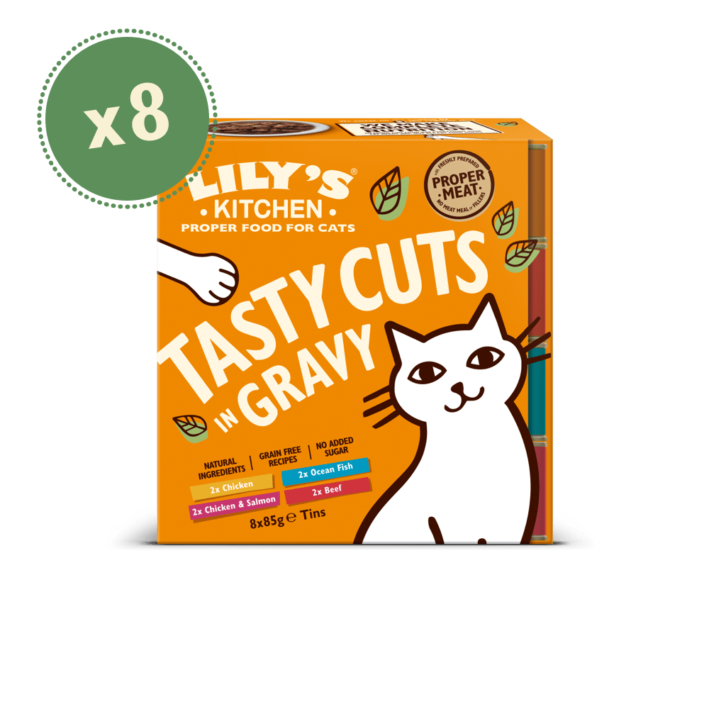 - 2 x Sabrosos menús de Salsa de Pollo y Salmón (85g): 53% Recién Preparado: Pollo 22%, Cerdo 21%, Salmón 10%, Gravy, Minerales.