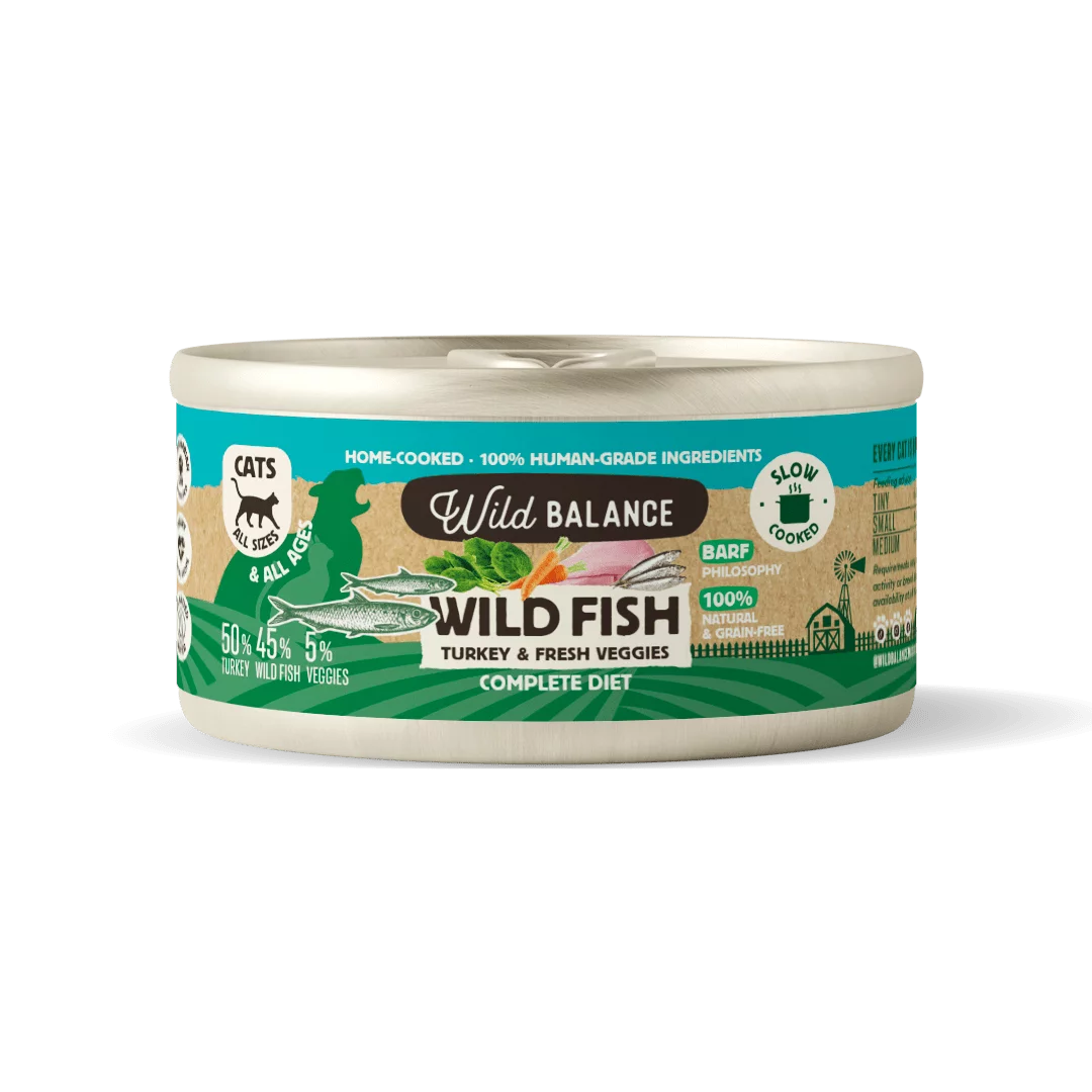 50% pavo fresco (35% pavo entero, 10% hígado de pavo, 5% corazón de pavo), 45% pescaditos salvajes (espadín), 3% zanahoria y 2% espinacas.