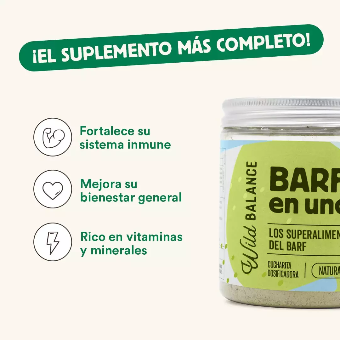 ¡El suplemento más completo de todos! Un mix elaborado con los 10 suplementos y superalimentos más importantes para su dieta. Ayuda a fortalecer el sistema inmune y a cuidar su bienestar general. 100% natural, como siempre. Aporte de vitaminas, minerales, con ingredientes antiinflamatorios y antioxidantes. Recomendado para perros y gatos.