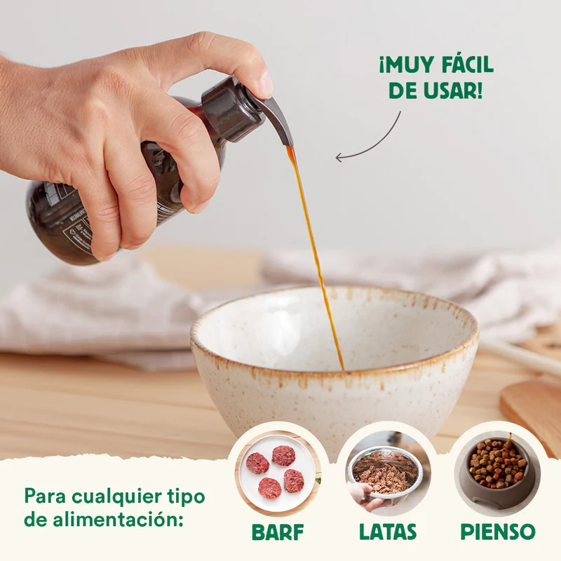 El aceite natural de sardina de Wild Balance es un alimento complementario y 100% natural que aporta numerosos beneficios para la salud de tu peludo. Puedes dárselo a diario, por ejemplo, añadiéndolo a su ración de BARF Wild Balance. Recomendado para perros y gatos.