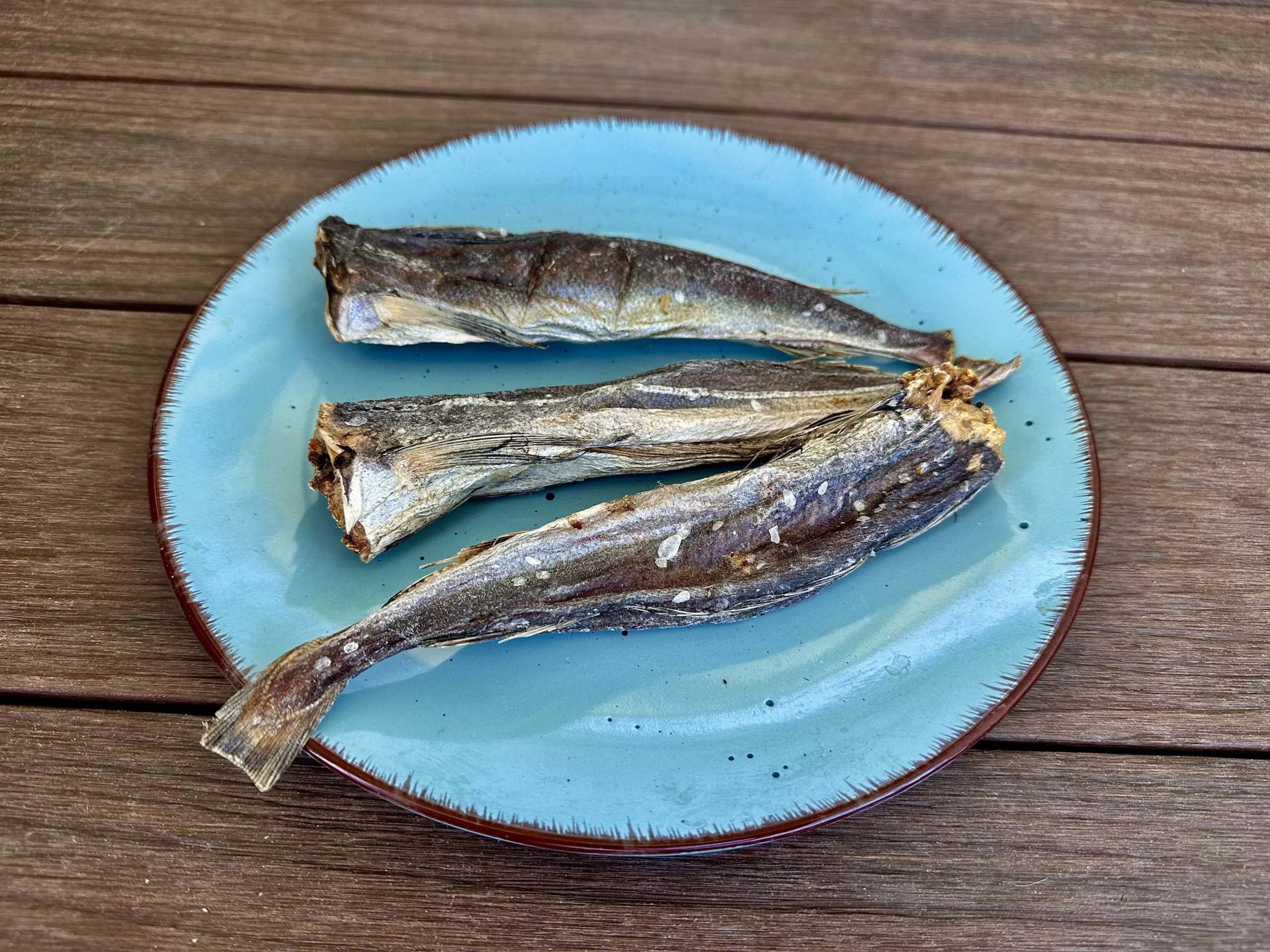Snack deshidratado a baja temperatura, la merluza es un pescado blanco muy nutritivo y con un olor muy rico que les volverá locos. Es apto para perros y gatos. Rico en Omega 3 y 6. Origen UE.