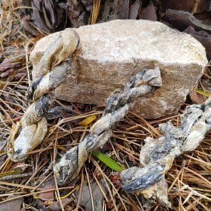 Trenza de pescado, es un snack muy crujiente de dureza baja, ideal para cachorros o perros mayores que no muerden cosas duras.