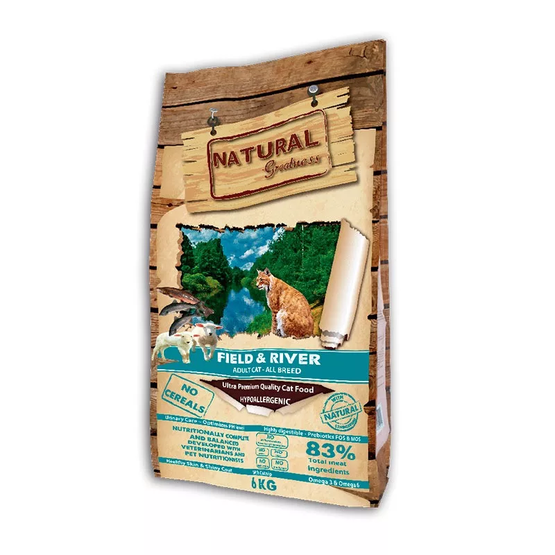 Total ingredientes cárnicos: 83 %.Salmón fresco (40 %), Carne deshidratada de cordero (30 %), Guisantes, Aceite de pollo (8 %), Patatas, Proteína de guisante, Proteína de patata, Hidrolizado de salmón (3 %), Pulpa de remolacha, Levaduras, Huevo entero deshidratado (1 %), Aceite de salmón (1 %), Sustancias minerales, Frutas (manzana y arándanos), Verduras (tomates y espinacas), Zanahoria, Calabaza, Algas, Inulina (FOS 0,1 %), Manano-oligosacáridos (MOS 0,1 %), Romero, Menta de gato, Perejil, Yucca schidigera, Glucosamina y Condroitina.