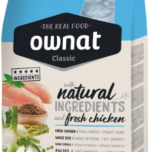 Carnes 36% (carnes deshidratadas 26%, pollo fresco* 10%), cebada integral* (10%), guisantes enteros* (9%), maíz integral* (9%), grasa de pollo, proteína de maíz, trigo integral* (7%), hidrolizado de salmón (5%), arroz integral* (2%), levadura de cerveza* (2%), proteína hidrolizada de pollo, manzana fresca* (1%), aceite de salmón, pulpa de remolacha, fructo y manano oligosacáridos, hierbas botánicas 0,02% (hinojo*, flor de manzanilla*, anís verde*), yucca schidigera. *Ingredientes naturales.