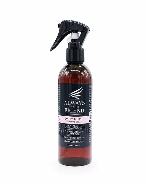 Pulverizar la capa evitando ligeramente los ojos. Peine y cepille suavemente.