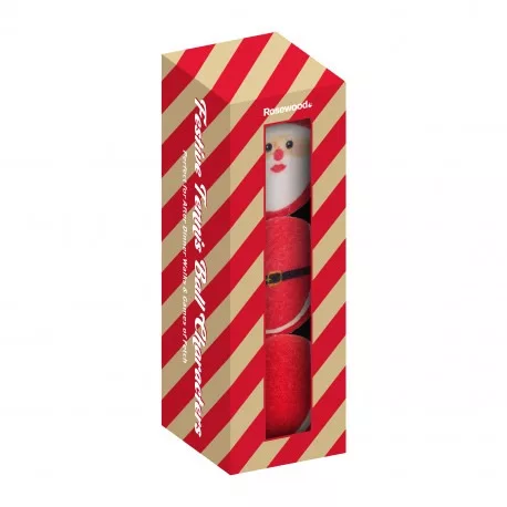 Set de 3 pelotas de tenis con estampado navideño muy gracioso. Contienen un pita dentro que al apretar hace sonido. Vienen en una cajita de cartón muy bonita con decorado navideño y una cuerda en la parte superior a modo de asa. Ideal para cualquier regalo perruno.