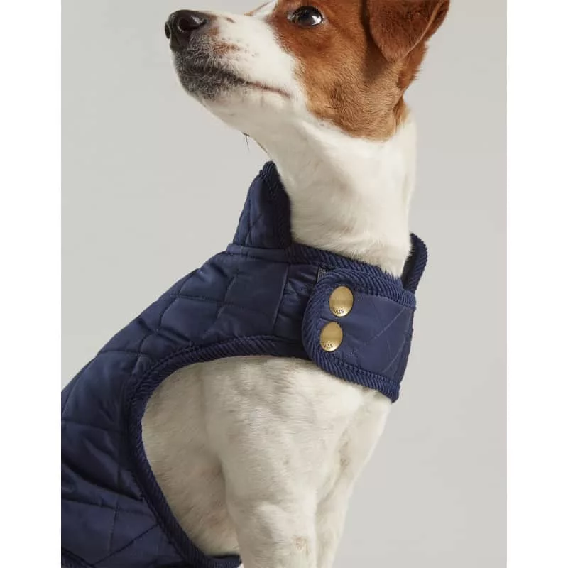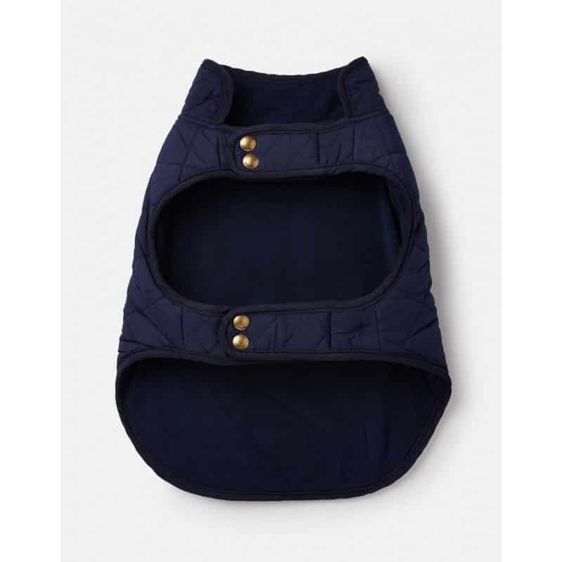 Abrigo acolchado azul con corchetes para abrochar en el cuello y en la tripa. Muy cómodo, calentito y estiloso.