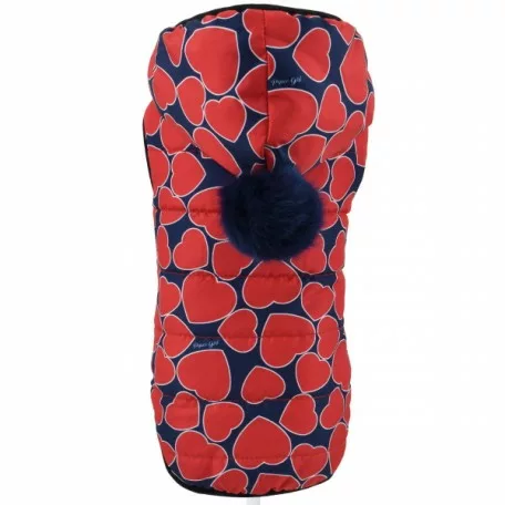 Tiene un ojal en la región del cuello para que pueda llevar a su mascota con el arnés o collar por dentro de esta ropa.