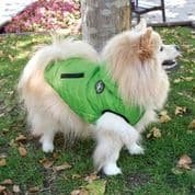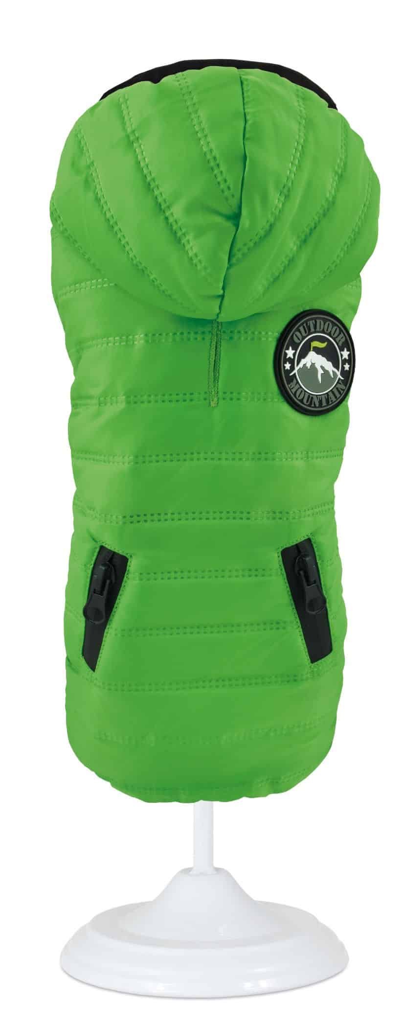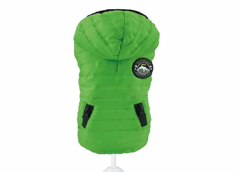 Chaqueta Casual color Verde, con capucha que se fija con un corchete para que no se vaya hacia a delante. Interior de forro polar para guardar mejor la temperatura, Con elástico para sujetar en el rabo.