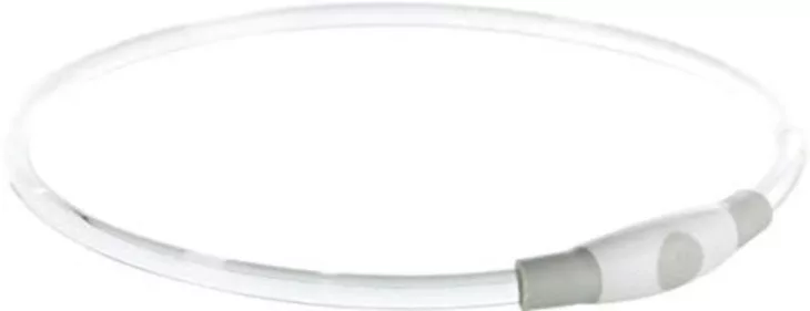 Este collar es un collar luminoso multicolor,  para tu perro con un parpadeo o función constante.  Ya no tienes que preocuparte de que tu perro no sea visible por la noche o en días grises con este collar de Trixie. Como el cuello es de plástico, puedes cortarlo fácilmente a la medida. El collar se ilumina por todas partes y puedes elegir entre luz intermitente y luz continua y con tres colores a elegir en un mismo collar: Azul, Rojo y verde). Después de su uso, puedes cargar el collar con el cable USB suministrado. ¡El collar tiene una visibilidad de hasta 200 metros!
