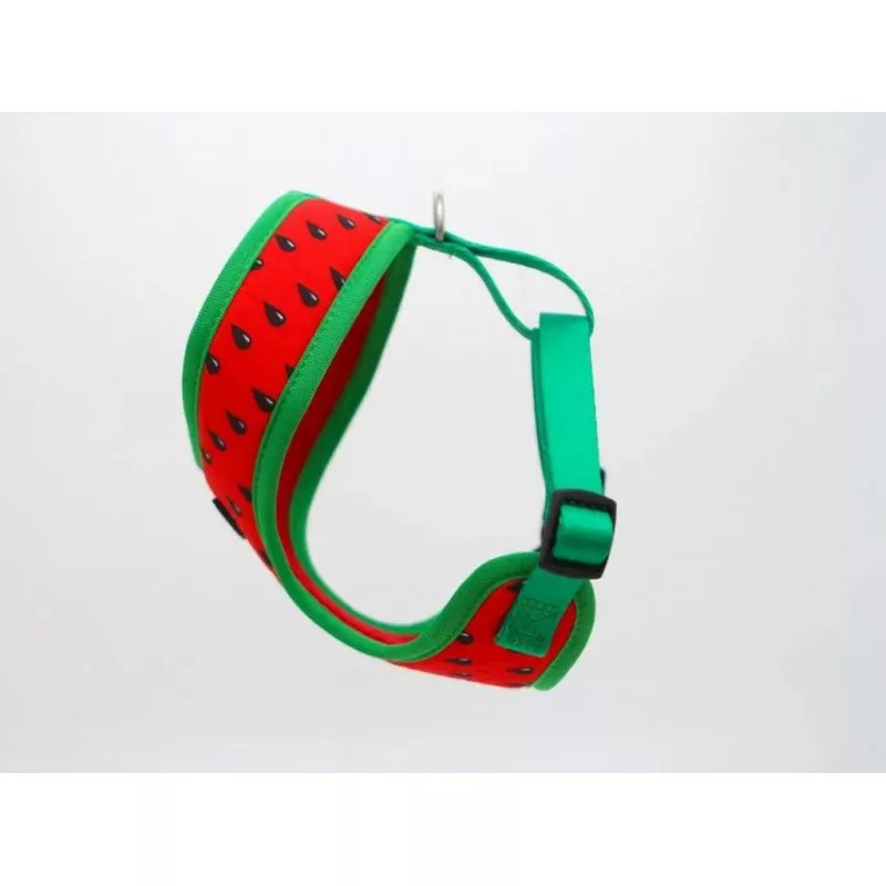 Arnés Freedog Verano Sandía para perros. Arnés, fabricado en nylon, para perros de todas las razas y disponible en hasta tres tallas. Es un arnés totalmente ajustable. Fabricado y compuesto de Poliéster, Nylon y Nikel que lo convierten en un producto más refrescante que el de la gama original, perfecto para los meses de verano. Combinación de colores y diseños exclusivos, refrescantes y vistosos dentro de la 'Summer Collection' de Freedog