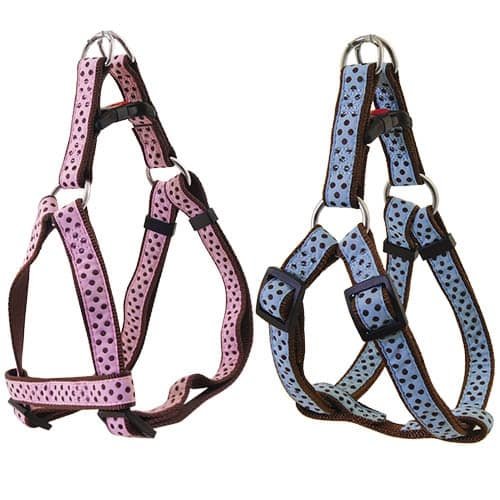 En color marrón, con una cinta decorativa externa azul o rosa con lunares marrones. Tanto el azul como el rosa, combinan muy bien con este marrón.