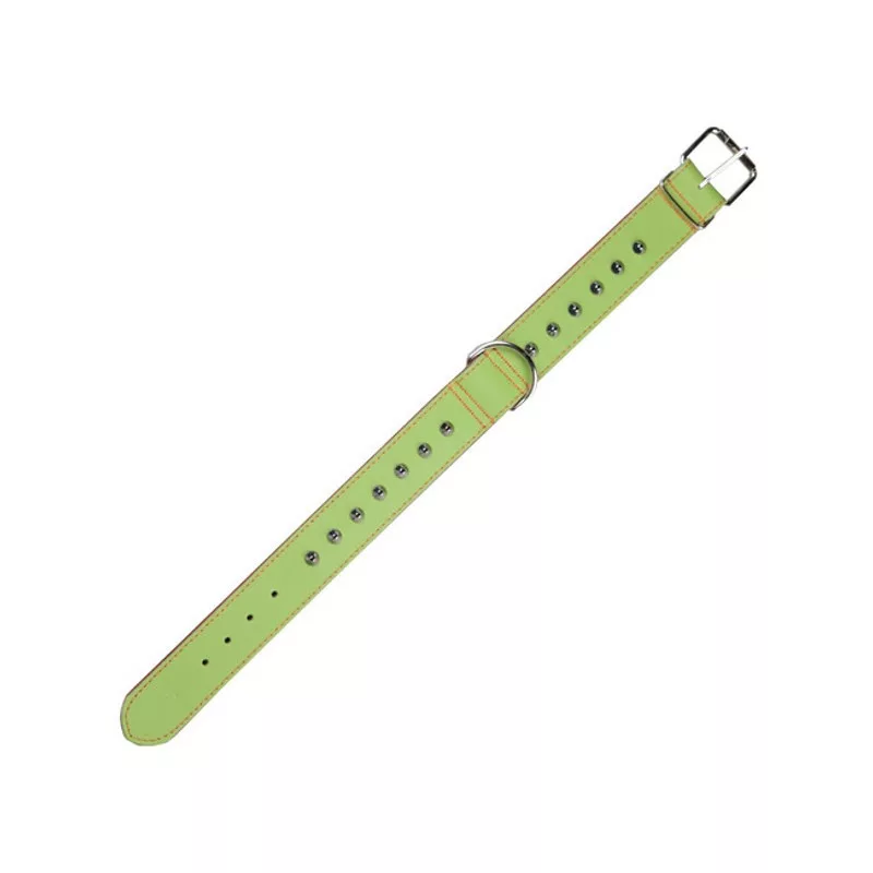 Collar de cuero verde con tachuelas en forma de mini pinchitos. Tiene un interior de piel vuelta para hacerlo más acolchadadito y cómodo. Todos los tamaños tienen un ancho de 4 cm.