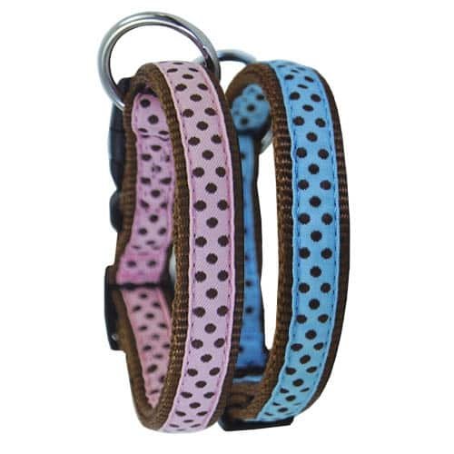Alegres collares de nylon para perros con estampado de lunares.
