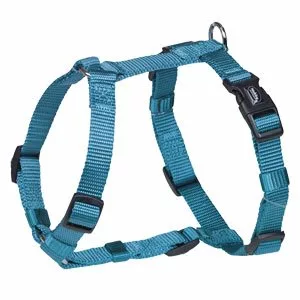 Arnés clásico de nylon regulable Nobby. Muy resistente, con dos cierres de clip en la parte superior.