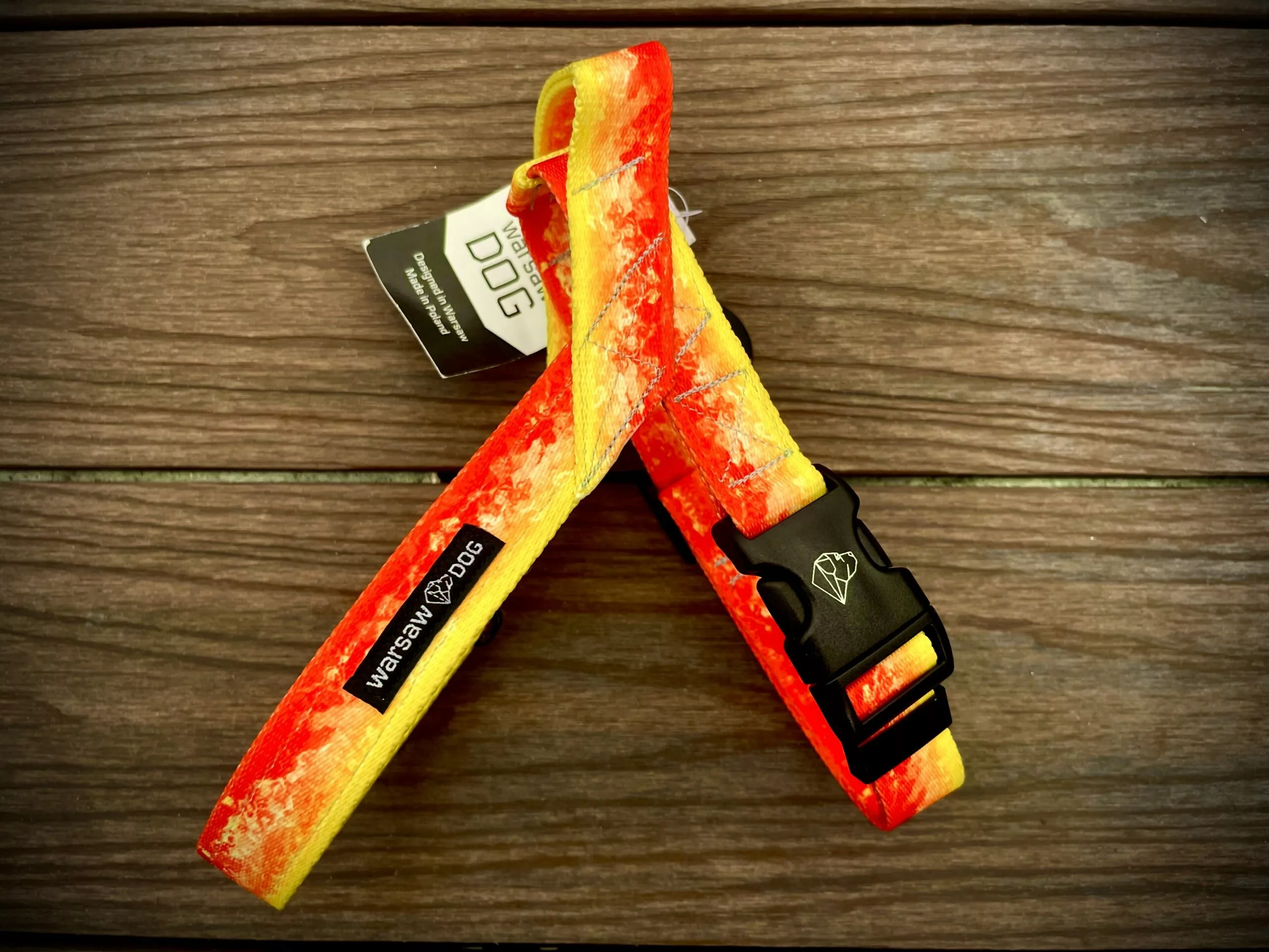 Arnés Warsaw Dog tipo nórdico. Fabricado en tejido muy suave podrá evitar rozaduras. En la parte de arriba lleva un asa para controlar a nuestro perro y en un lateral una chapita para grabar el número de teléfono.