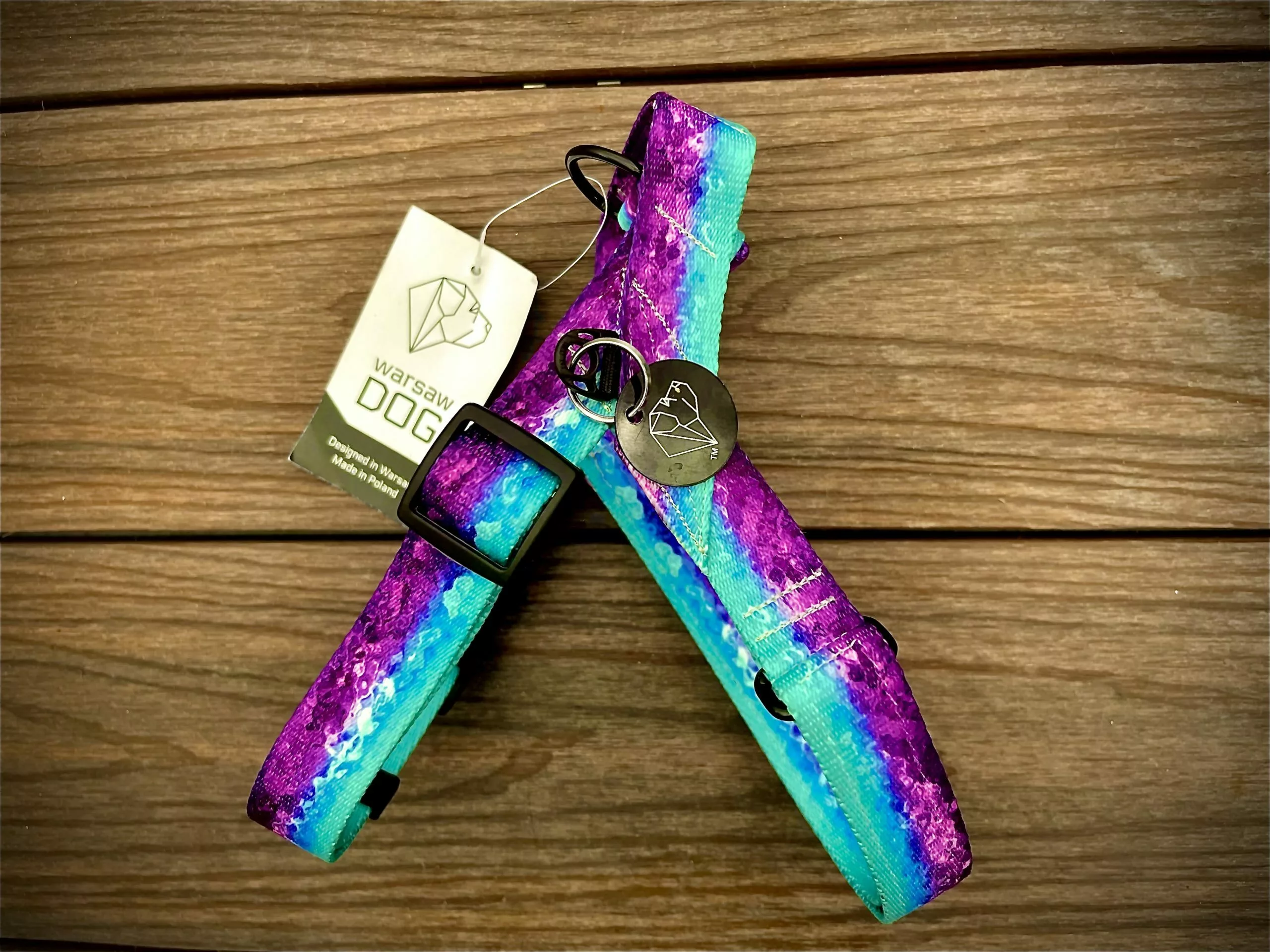 Arnés Warsaw Dog tipo nórdico. Fabricado en tejido muy suave podrá evitar rozaduras. En la parte de arriba lleva un asa para controlar a nuestro perro y en un lateral una chapita para grabar el número de teléfono.