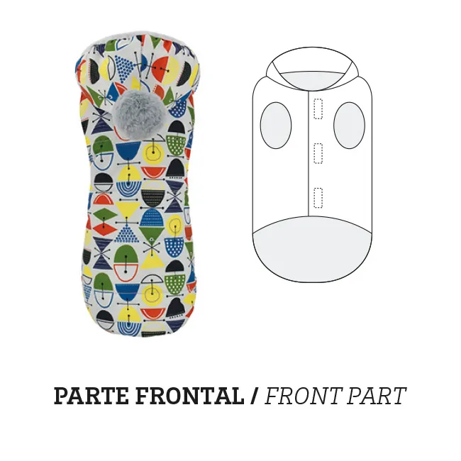 • Capucha Misteriosa: La capucha es el toque perfecto para que tu perro pueda acechar y descubrir todos los secretos del vecindario, ¡pero cuidado, su llamativo ponpón puede delatarle!, además lleva un corchete para que se mantenga en el sitio y no le moleste al andar.