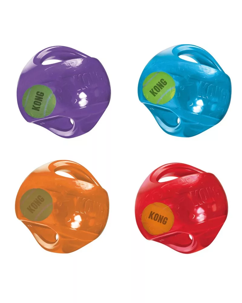 Jumber Ball es un juguete súper resistente,con una pelota de tenis en el interior que produce sonido al moverse.Tiene unas asas para que nuestro compañero juegue agarradónlas o nosotros con ellos.