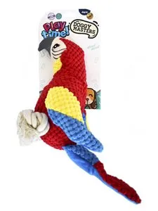 El juguete de peluche guacamayo para perros de la línea Play Time Doggy Masters es un divertido accesorio diseñado para entretener a tu mascota. Presenta un diseño colorido y realista de un guacamayo, lo que lo hace atractivo para tu perro. Además, cuenta con un nudo en la parte inferior que facilita su uso como juguete tirador, perfecto para juegos interactivos. Este juguete es seguro y resistente, adecuado para juegos de morder y tirar. Además, emite sonido al ser presionado, lo que añade un elemento de diversión adicional para tu perro durante el juego.
