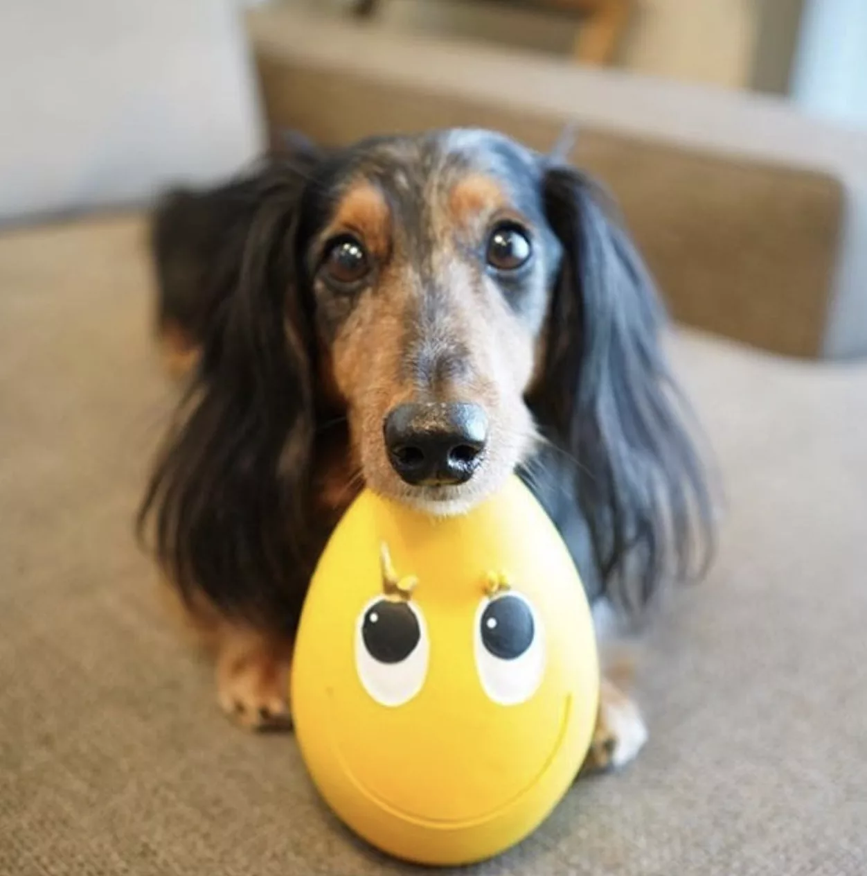 Juguete en forma de huevo de caucho natural. Un juguete que a todos los perros les apasiona por su sonido estridente y su textura suave y blandita, y pese a ello es un juguete resistente ya que... ¡Poco son los perros que se atreven a romperlo! Si tu perro es un poco juguetón, no dudes en probar el huevito molón. Ahora disponible hasta la talla XXL