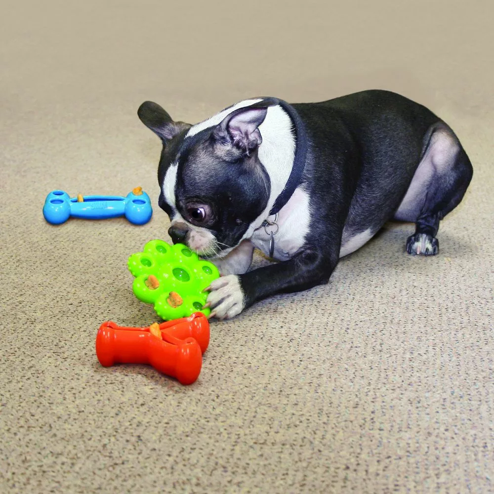 Un juguete de administración de bocados con mucha personalidad. Fabricado con un material flexible y de colores brillantes, los juguetes KONG Quest suponen todo un reto. Todos los juguetes son adecuados para masticadores de suaves a moderados y pueden rellenarse con los bocados o croquetas favoritos del perro para estimular su instinto natural de buscar comida y alargar el tiempo del bocado.