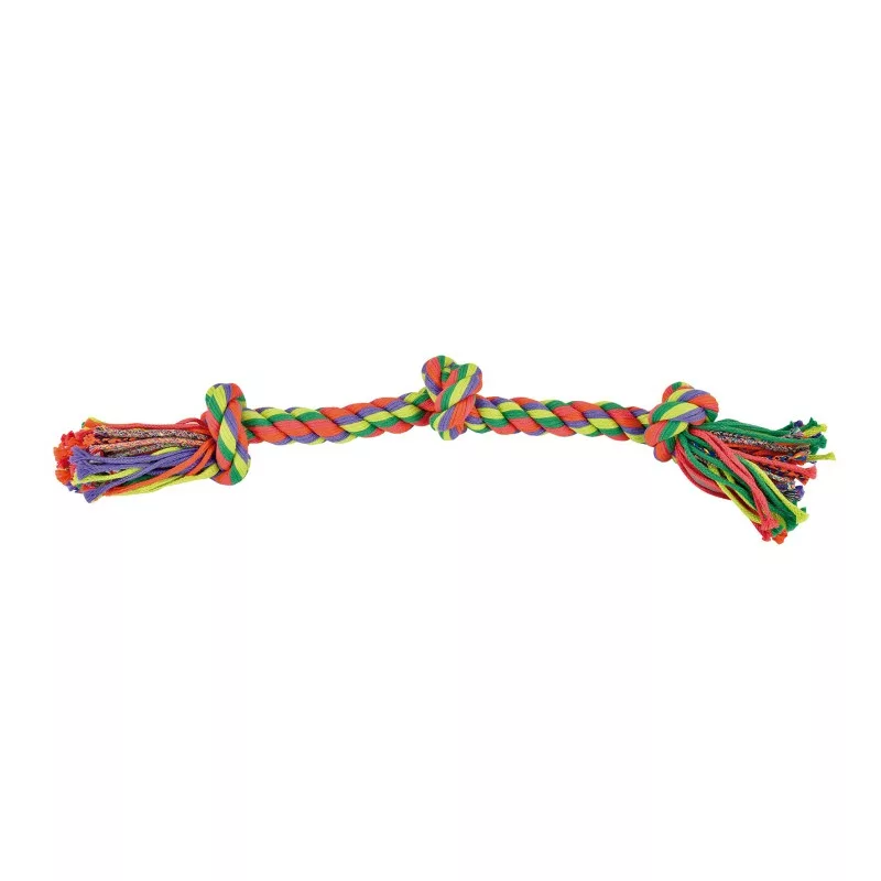Cuerda dental compuesto por hilos entrelazados en su interior que incrementan su resistencia y durabilidad. Ideal para juegos de lanzar, recoger, tirar y aflojar. Ayudará la higiene dental de su mascota así como el fortalecimiento de sus mandíbulas.