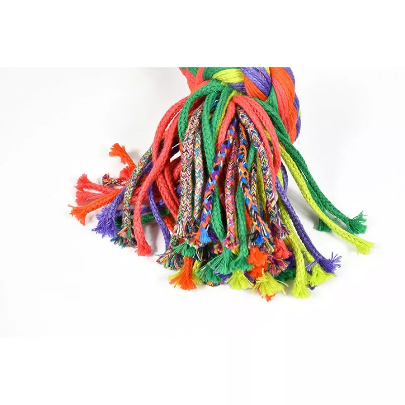 Cuerda dental compuesto por hilos entrelazados en su interior que incrementan su resistencia y durabilidad. Ideal para juegos de lanzar, recoger, tirar y aflojar. Ayudará la higiene dental de su mascota así como el fortalecimiento de sus mandíbulas.