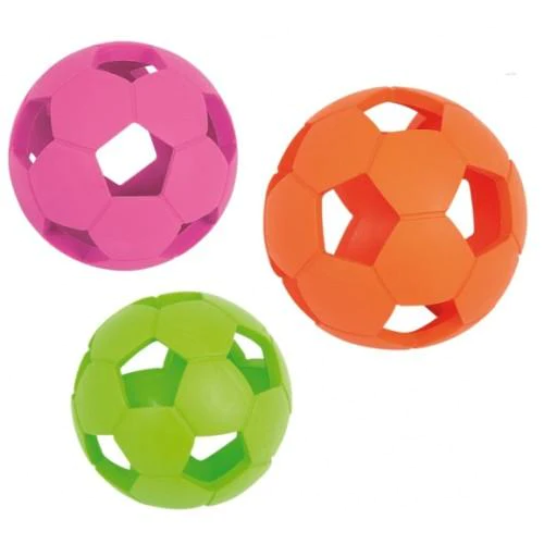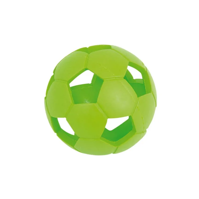 La pelota Air Ball de goma de Nayeco es perfecta para jugar con tu perro tanto dentro como fuera de casa. Sus agujeros y material de caucho natural la hacen divertida y duradera, ¡y rebota mucho para mantener a tu mascota entretenida durante horas! Además los agujeros son funcionales, ya que se pueden meter masticables dentro para que la diversión sea extra.