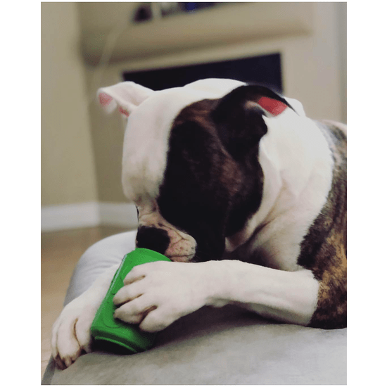 Juguete rellenable, muy resistente, para aguantar mordiscos de grandes masticadores. Por su gran capacidad se puede rellenar de paté, yogur, manteca de cacahuete, premios y hasta snacks deshidratados de bastante gran tamaño. También se puede proporcionar sus ración de comida dentro del juguete.