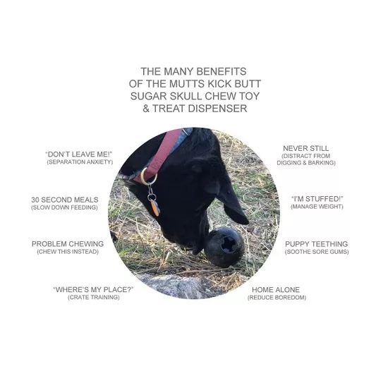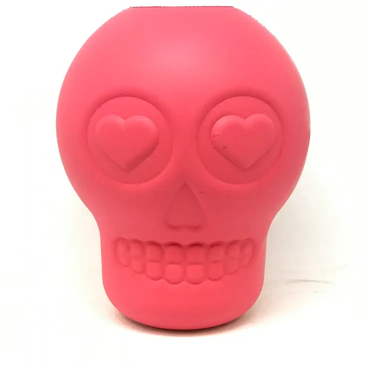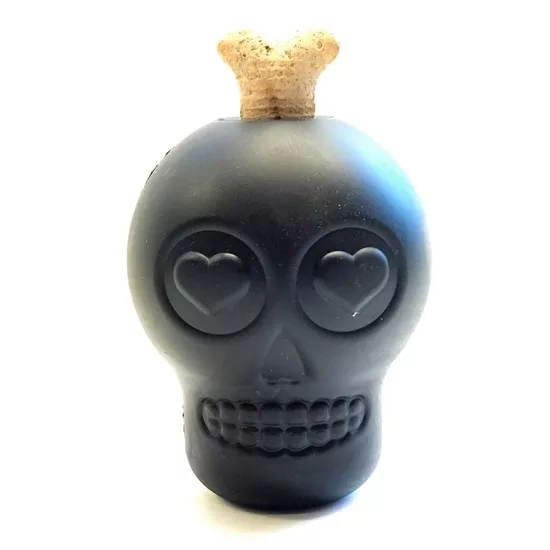 Mordedor en forma de calavera, que está diseñado para resistir grandes mordeduras. Fabricado en Nylon super resistente, con un agujero en la parte de arriba para poder rellenar con snacks de diferentes tamaños y con comida húmeda. También puede servir como comedero antivoracidad porque debido a su gran capacidad, podría servirse bastante ración de comida en su interior. Es apto también para el congelador, con ello conseguirás resultados más duraderos. Fabricado en Estados Unidos de América