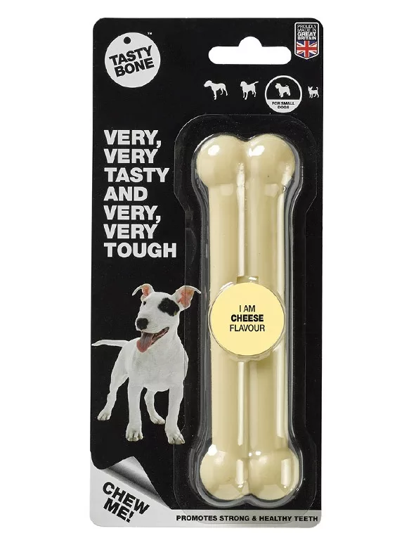 TastyBones satisface todas las ganas de roer de un perro. Con cada mordisco, los dientes y las encías de su perro se vuelven más fuertes, protegiéndolo contra las infecciones. La saliva producida al masticar ayuda a descomponer la placa y previene la acumulación de sarro, mientras que los surcos y crestas en los huesos limpian suavemente los dientes y masajean las encías. Adiós, aliento de perro.