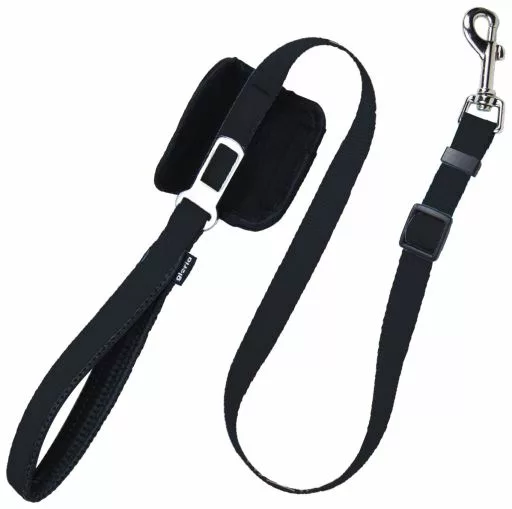 Correa muy práctica ya que tiene un doble uso, se puede usar como correa normal y además tiene incorporado un enganche para el cinturón del coche. Además es extensible, se puede hacer más larga y más corta para adaptarla a nuestras necesidades