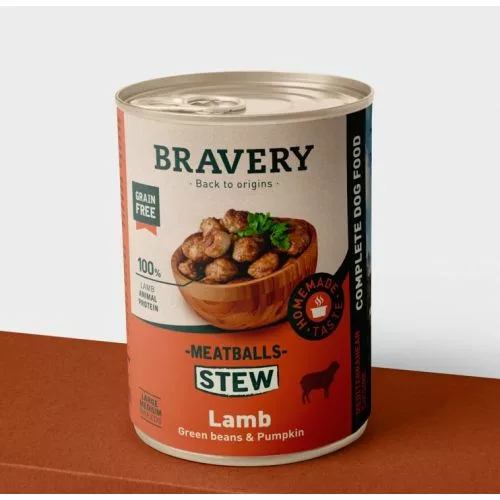 cordero deshuesado 66%, tapioca, guisantes, vaina de algarroba, aceite de oliva virgen extra. Salsa: caldo de cocción, hígado de cordero, calabaza 1,5%, judía verde 1,5%, extracto natural de algarroba