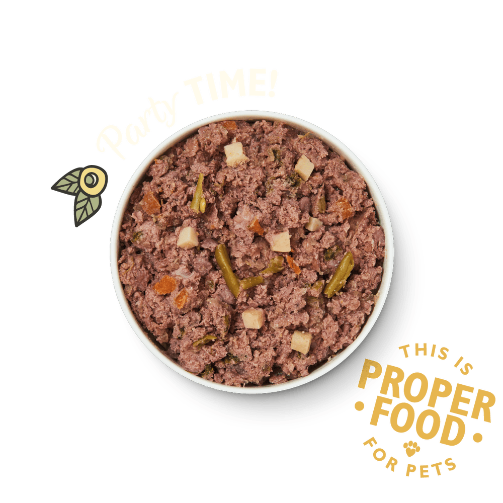 Esta receta es una autentica fiesta para tu perro, a tope de pollo que les encanta a todos los perros, y completado con unas fresitas veraniegas y unas verduritas de la huerta, y como siempre con el la mezcla única de hierbas botánicas que siempre incluye esta marca.