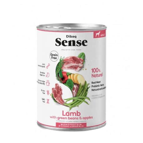 Alimento húmedo para perros completo hipoalergénico y monoprotéico elaborado con cordero que por su origen y condiciones puede consumirse por humanos.