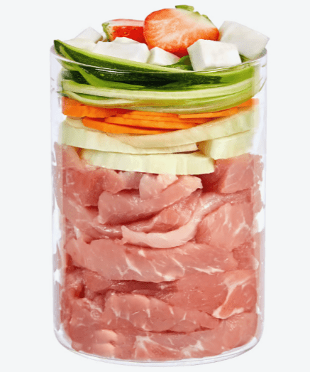 Carne:verduras/frutas/hierbas:otros complementos = 56 %:40 %:4 %