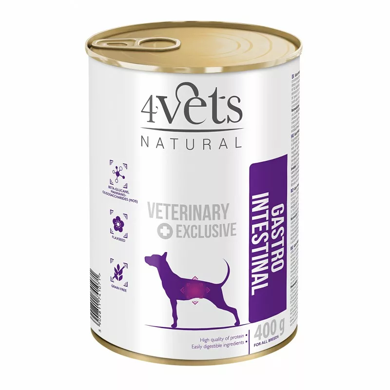 Contiene ingredientes de fácil digestión, un bajo nivel de grasas y una mayor cantidad de electrolitos, cuya tarea es reponer las sustancias perdidas por problemas relacionados con el proceso digestivo. También se recomienda durante la convalecencia después de una enfermedad. Después de consultar a un veterinario, se puede utilizar en condiciones de insuficiencia pancreática crónica. El uso de una dieta fácilmente digerible, gracias a la consistencia modificada y al contenido de proteínas y grasas fácilmente digeribles, con factores de alto valor biológico, asegura la nutrición y la regeneración del cuerpo al tiempo que preserva las funciones digestivas y secretoras del tracto gastrointestinal.